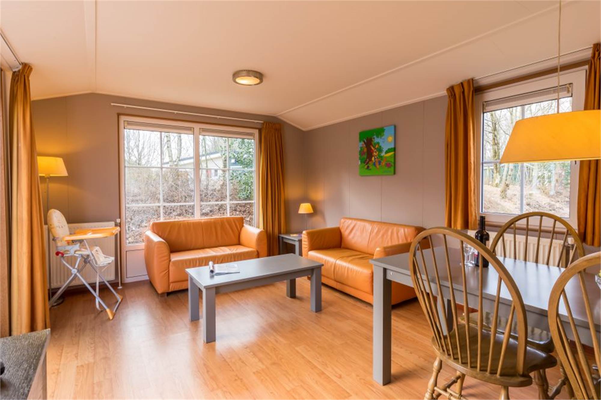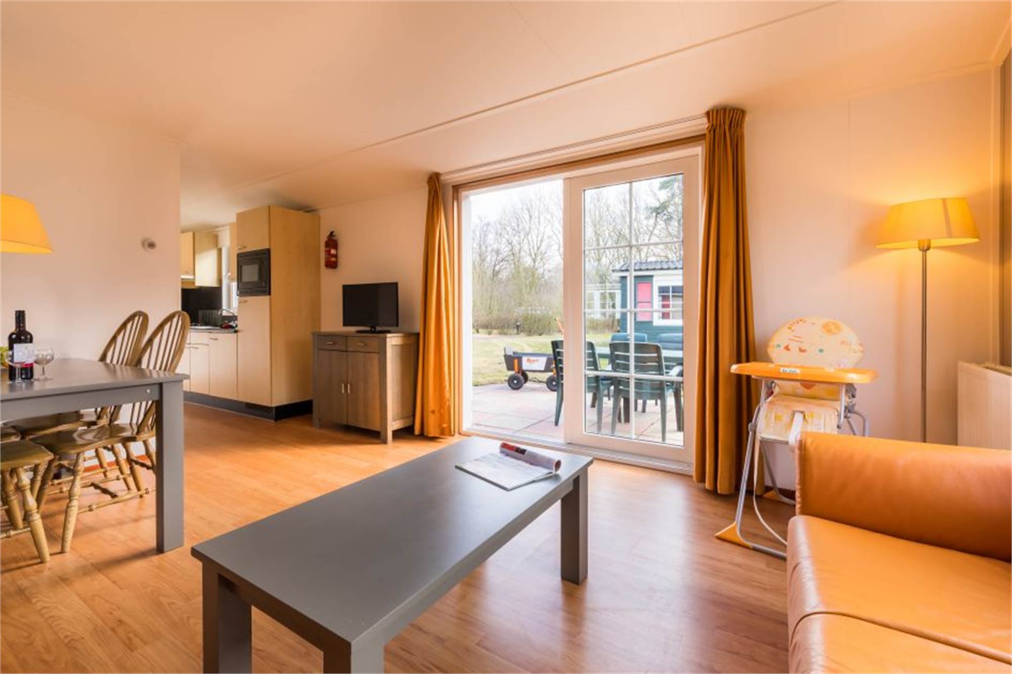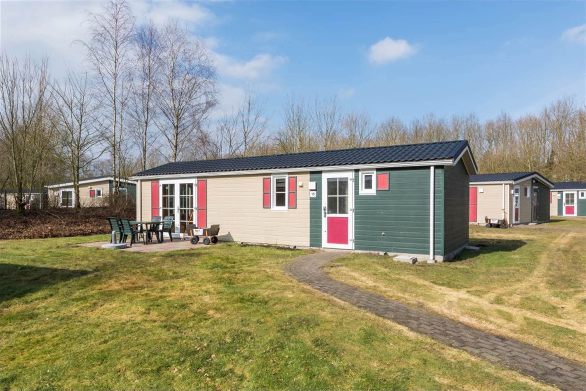 Dit kindvriendelijke, vrijstaande chalet is geschikt voor 4 volwassenen en 1 kind. De woonkamer is voorzien van een aparte eethoek en in de keuken vind je onder andere een combimagnetron en koffiezetapparaat. Daarnaast zijn er 2 slaapkamers met 2 eenpersoonsboxspringbedden en is er een badkamer met douche en een apart toilet. Ook is het chalet uitgerust met een kinderbed en -stoel en zijn de wandcontactdozen afgeschermd. Verder is er een gemeubileerd terras en kan je gratis gebruikmaken van wifi.