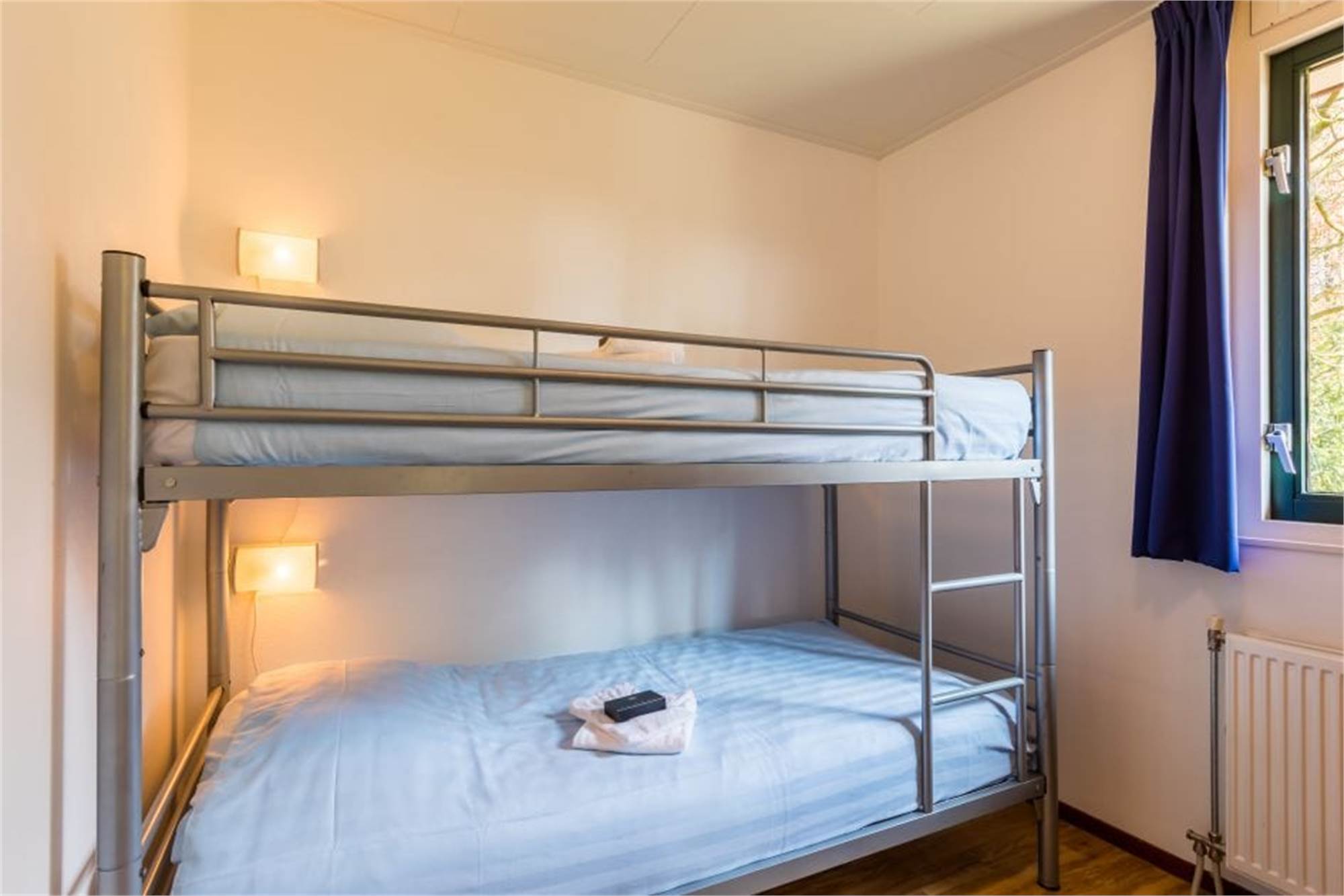 Deze vrijstaande bungalow is geschikt voor 6 personen. De woonkamer is voorzien van een sfeerhaard of open haard en in de open keuken vind je onder andere een magnetron en koffiezetapparaat. Daarnaast zijn er 3 slaapkamers, waarvan 2 met elk 2 eenpersoonsbedden en 1 slaapkamer met stapelbed. De badkamer beschikt over een douche, ligbad of douche in ligbad. Het toilet is apart. Ook is de bungalow uitgerust met een gemeubileerd terras en kan je gratis gebruikmaken van wifi.