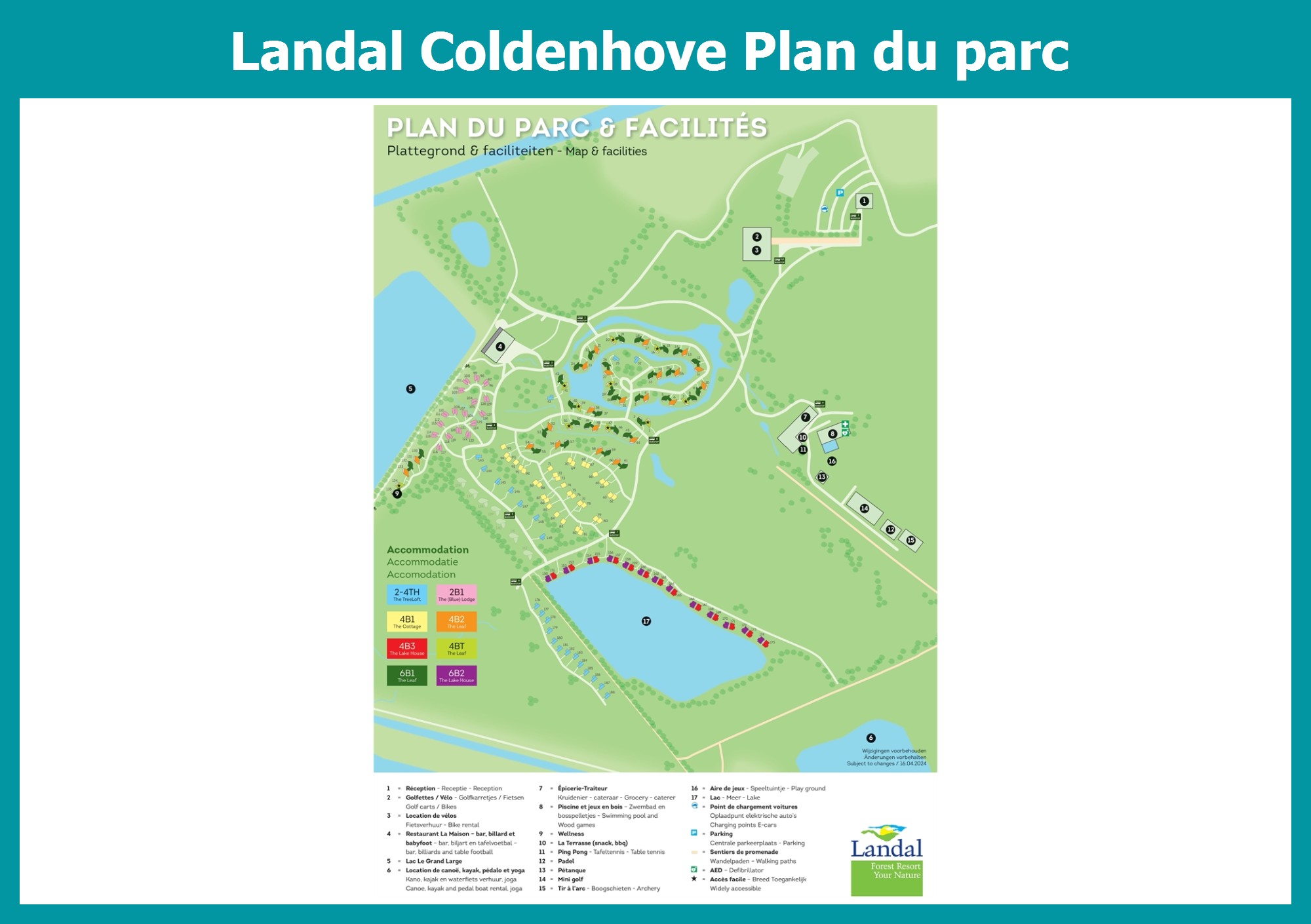 Le plan actuel du Landal Coldenhove avec tous les hébergements et installations, est aussi disponible en pdf.