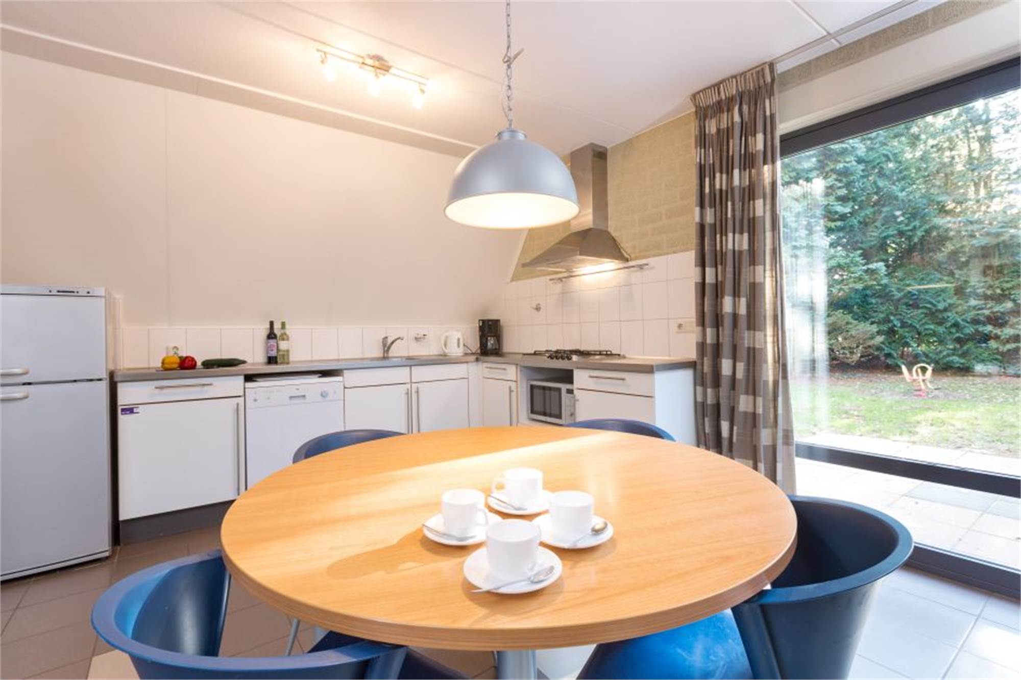Deze vrijstaande bungalow is geschikt voor 4 volwassenen en 2 kinderen en is geheel kindvriendelijk. De woonkamer beschikt over een zithoek met televisie en dvd-speler. De keuken is voorzien van een combimagnetron, vaatwasser, koel-vriescombinatie, koffiezetapparaat en waterkoker. Op de begane grond bevinden zich verder 1 slaapkamer en 1 badkamer met douche en toilet. Op de eerste verdieping vind je nog 2 slaapkamers, waarvan 1 met stapelbed, en 1 kindvriendelijke badkamer met verlaagde wastafel en verlaagd toilet. In de bungalow is het volgende voor 1 kind aanwezig: bedje, box, stoel en badje. Er zijn traphekjes en de wandcontactdozen zijn afgeschermd. De bungalow beschikt over gemeubileerd terras en er is parkeergelegenheid nabij de accommodatie. Je kunt gratis gebruikmaken van wifi.