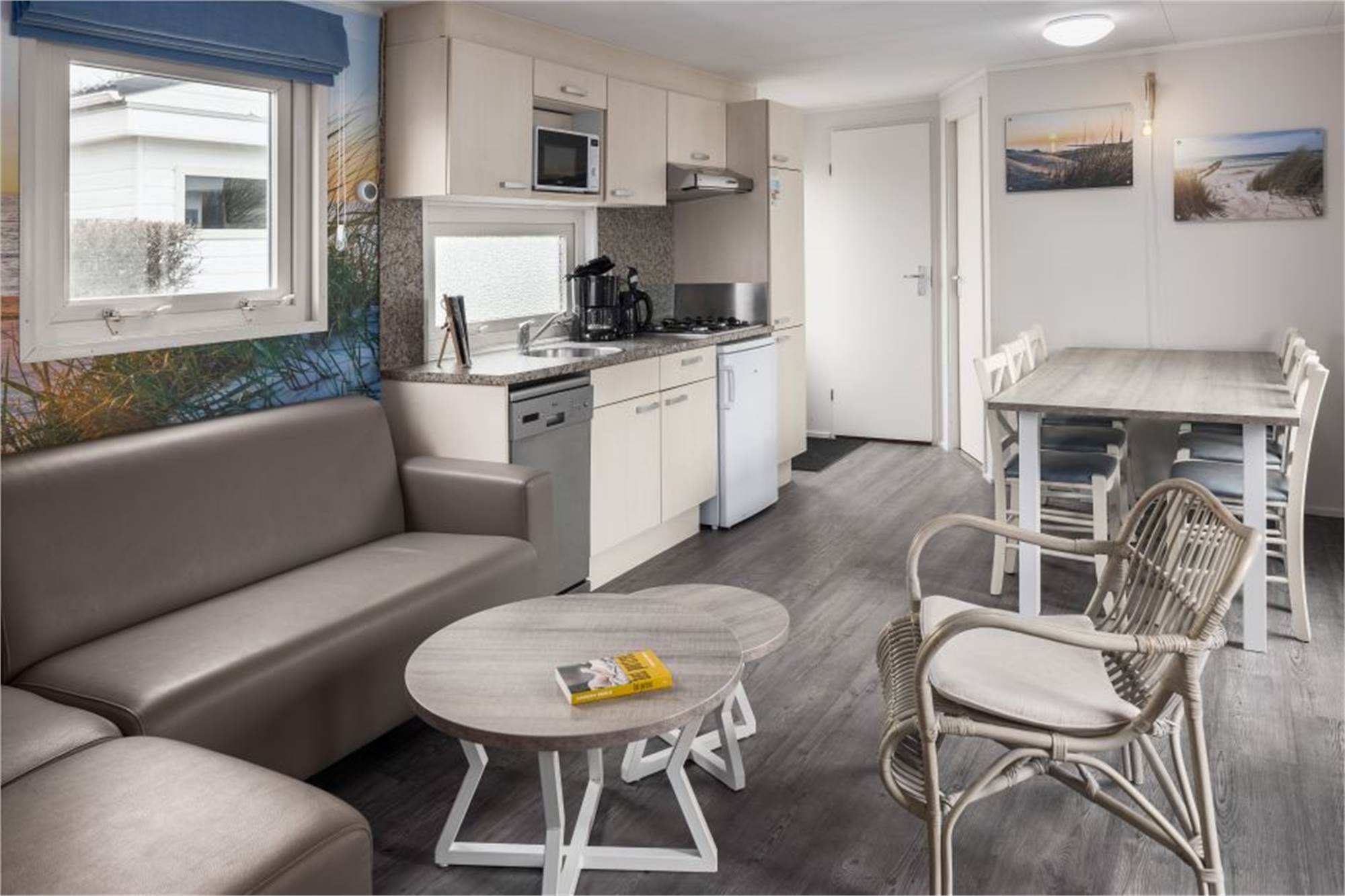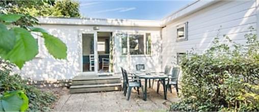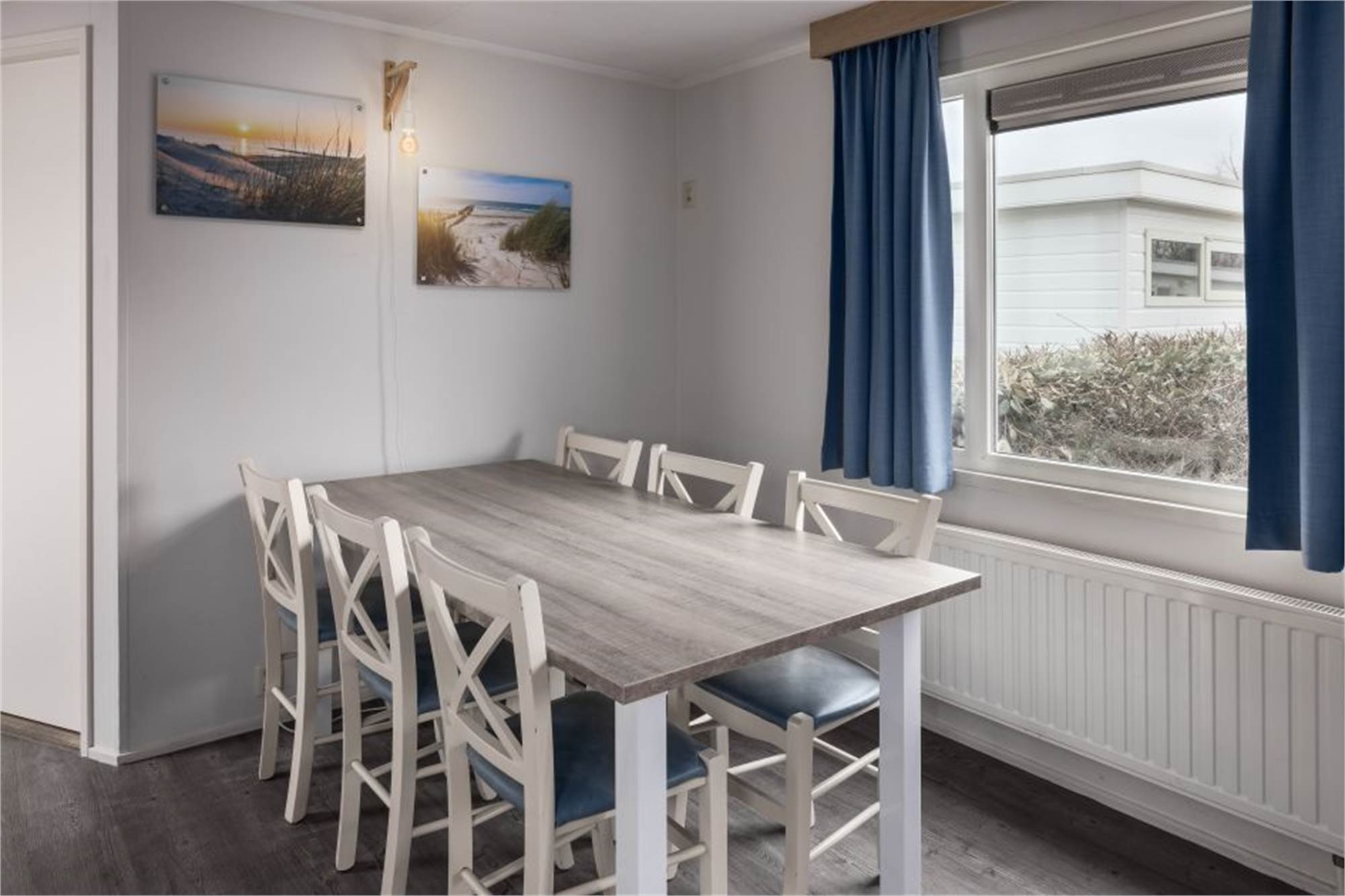 Dit gelijkvloerse chalet is geschikt voor 6 personen. De woning heeft een fris ingerichte woonkamer met een gezellige zithoek en een tv. De open keuken is uitgerust met onder andere een vaatwasser, een magnetron en een filterkoffiezetapparaat. Verder heeft het chalet 3 slaapkamers, waarvan 2 met stapelbedden en 1 met 2 eenpersoonsbedden. Ook is er een badkamer met douche en toilet. Buiten vind je een tuin met gemeubileerd terras.