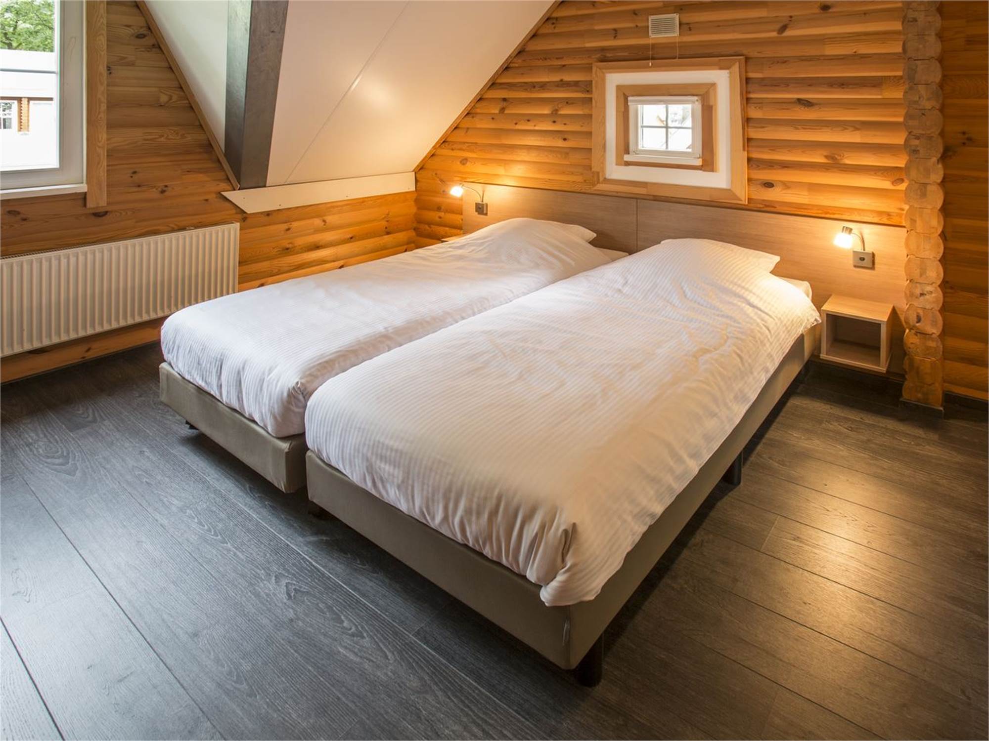 Chambre à coucher avec deux boxsprings 1 personne et couvre-matelas softtoper pour 2 personnes au premier étage