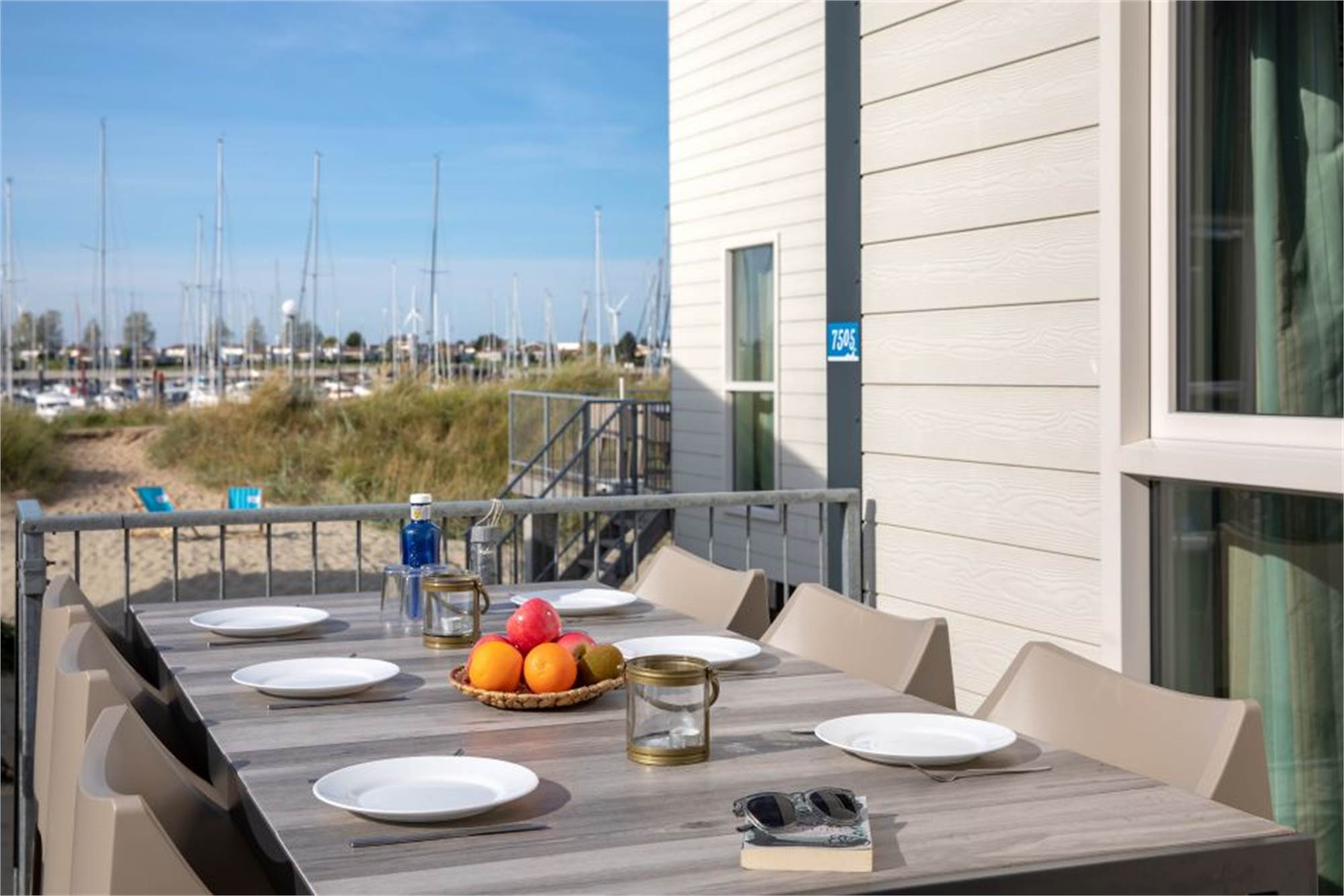 Deze Beach Houses staan óp het strand, waar je een prachtig uitzicht hebt over de jachthaven. Deze accommodatie is geschikt voor 6 personen. Er zijn 3 slaapkamers, waarvan 2 boven en 1 beneden. Alle slaapkamers zijn ingericht met eenpersoonsbedden. Er is een televisie aanwezig en de keuken is voorzien van een vaatwasser, combi-magnetron, koffiecupapparaat, waterkoker en koelkast met intern vriesvak. Je kunt gratis gebruikmaken van wifi.
