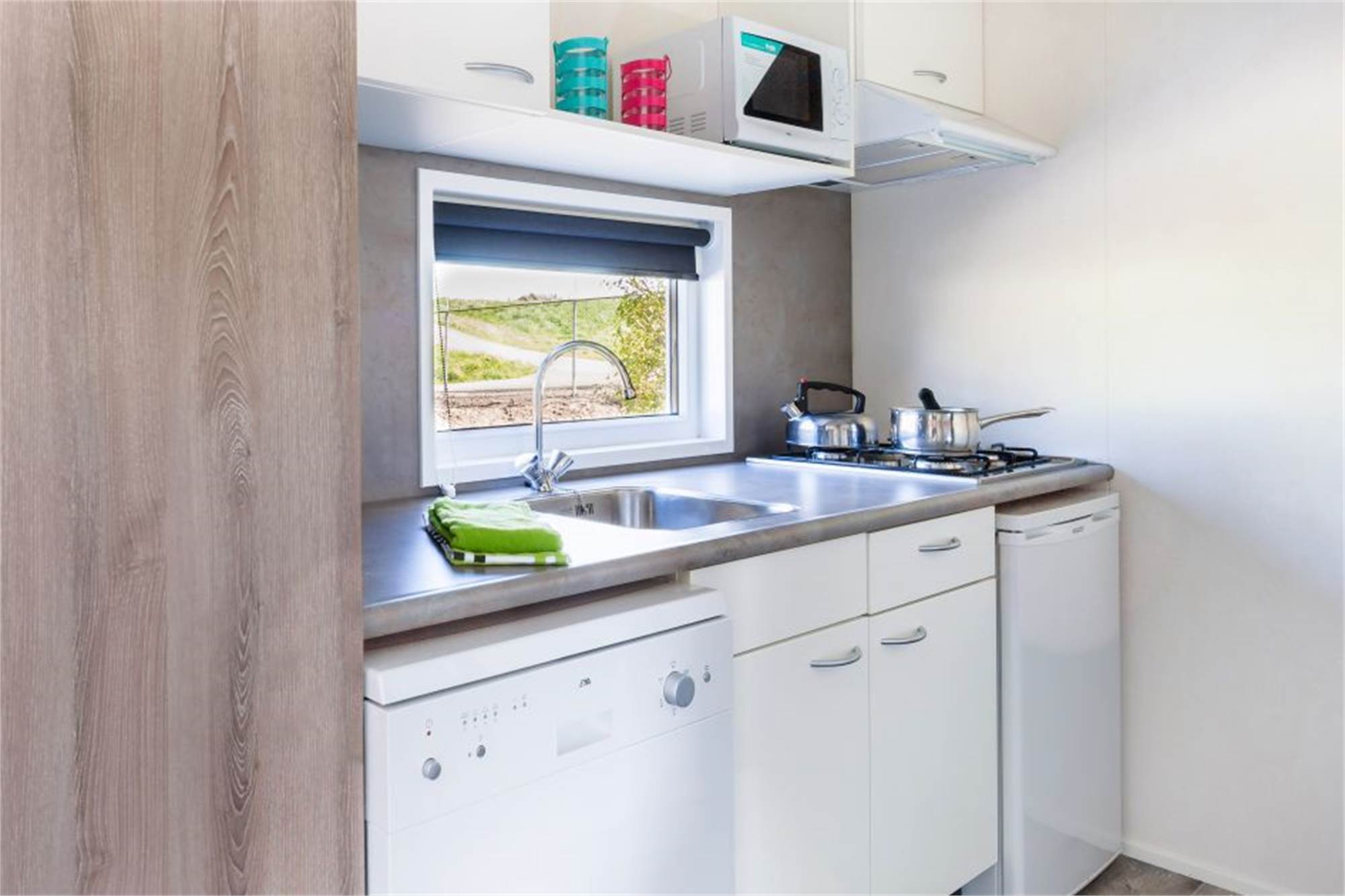 Dit chalet is geschikt voor 4 personen. Er is een woonkamer met televisie en een keuken met onder andere een magnetron. Er zijn in totaal 2 slaapkamers, waarvan 1 slaapkamer met tweepersoonsbed en 1 slaapkamer met 2 eenpersoonsbedden. Het chalet heeft een badkamer met douche en toilet. Het terras is voorzien van tuinmeubilair. Je kunt gratis gebruikmaken van wifi.