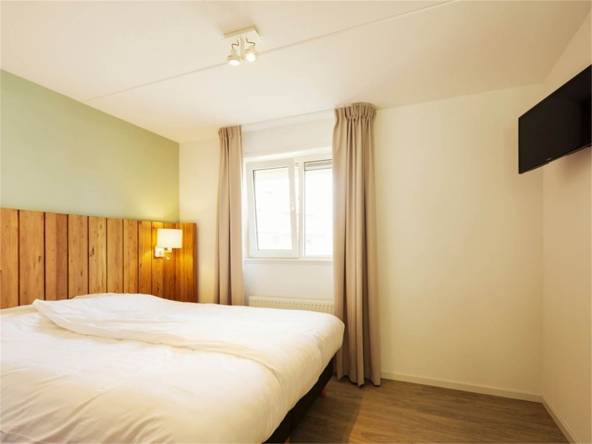 Chambre à coucher avec deux boxsprings Auping 1 personne, couvre-matelas softtoper et tv