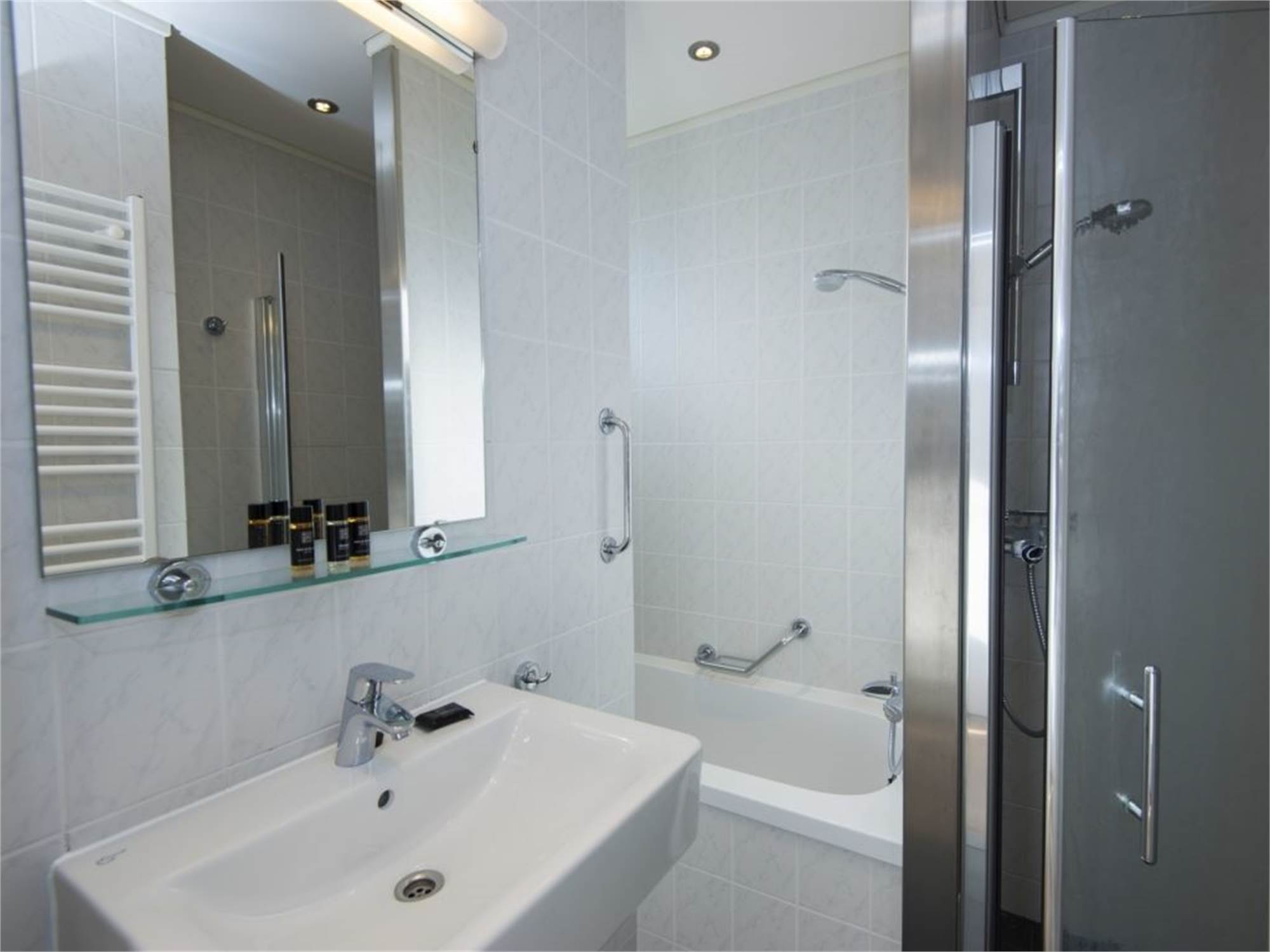 • Salle de bains avec baignoire, cabine de douche et lavabo