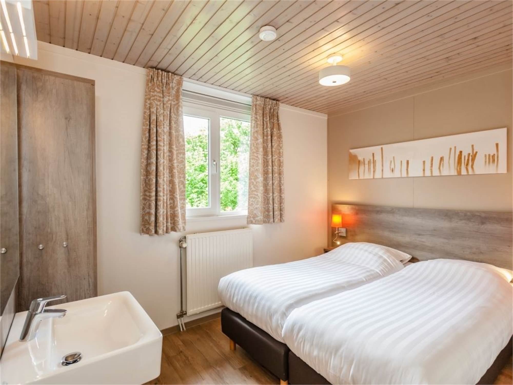 • Deux chambres à coucher avec deux boxsprings 1 personne et lavabo