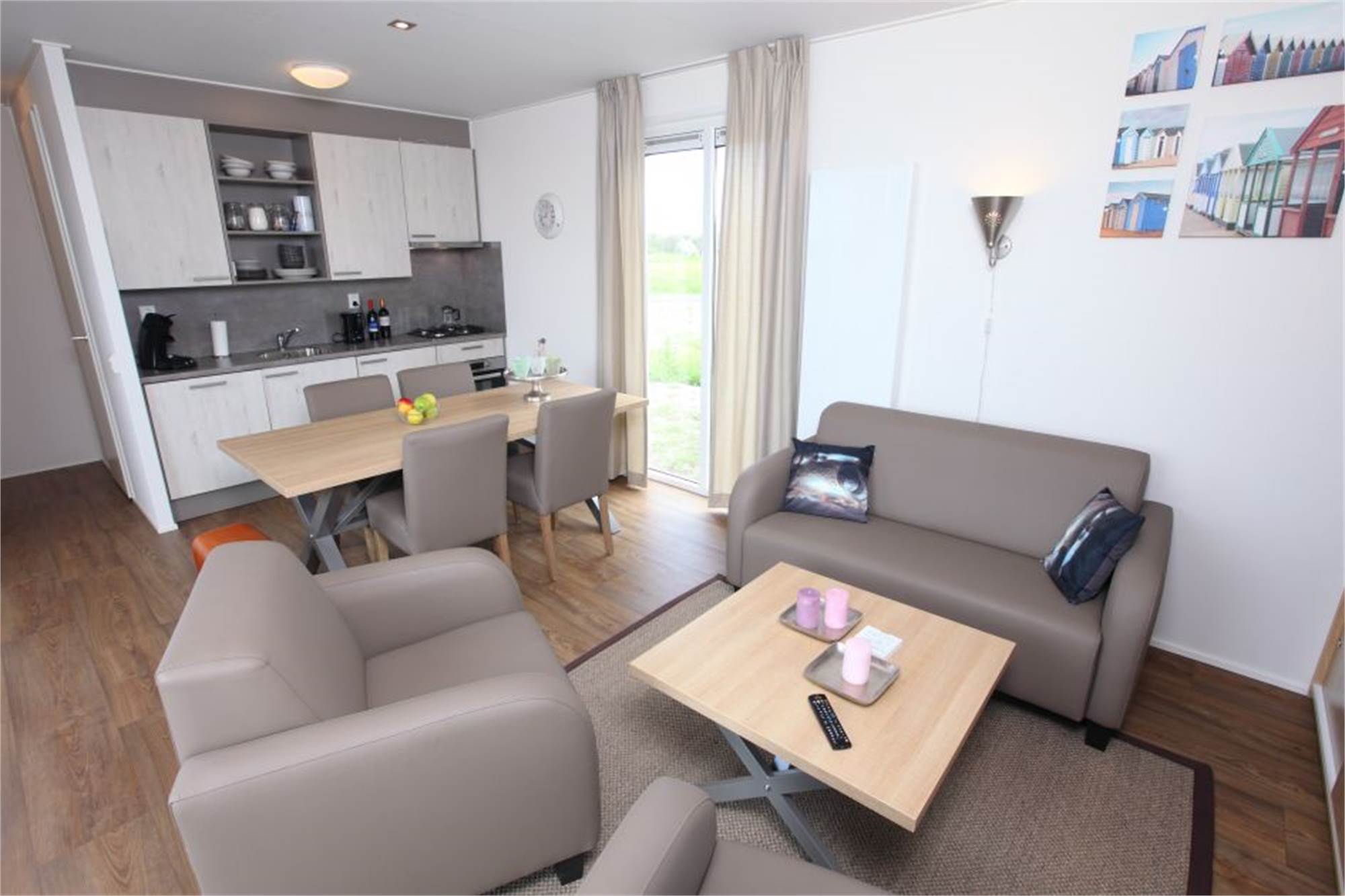Deze gelijkvloerse, vrijstaande lodge is geschikt voor 4 personen. In de woonkamer met smart-tv is er een aparte eethoek en in de keuken vind je onder andere een vaatwasser, combimagnetron en koffiepadapparaat. Er zijn 2 slaapkamers met elk 2 eenpersoonsboxspringbedden en er zijn 2 badkamers met douche. Ook beschikt de lodge over een tuin met meubilair. Je kunt gratis gebruikmaken van wifi en er is parkeergelegenheid voor één auto bij de lodge. Enkele lodges zijn luxe uitgevoerd met een wasmachine, wasdroger, televisie op de slaapkamer, loungeset en zonneligbedden. Deze lodges zijn met voorkeur te boeken.