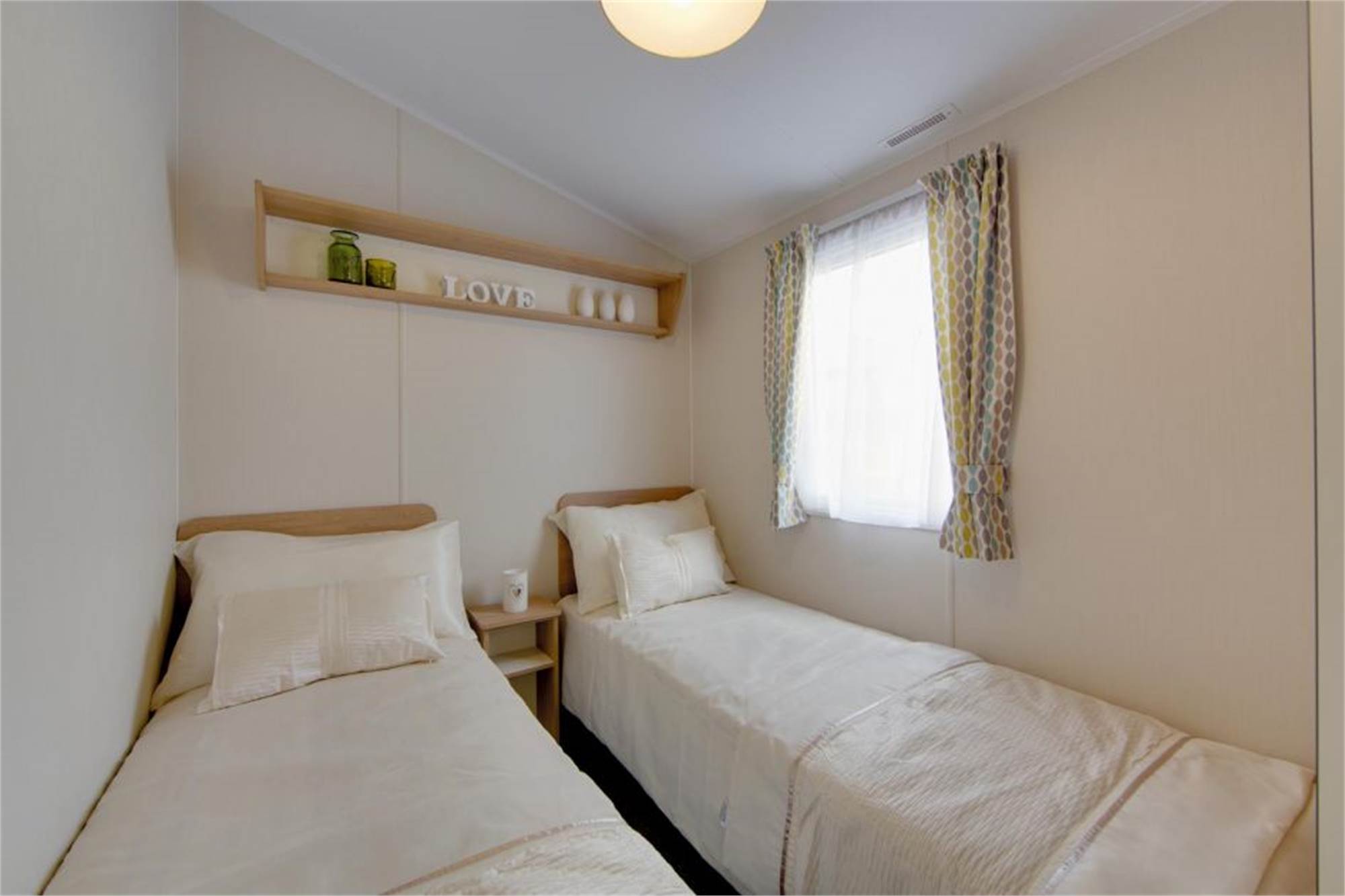 Dit vrijstaande chalet is geschikt voor 4 personen. De woonkamer is voorzien van een gaskachel en in de open keuken vind je onder andere een magnetron en koffiezetapparaat. Daarnaast zijn er 2 slaapkamers met elk 2 eenpersoons boxspringbedden en is er een badkamer met douche en toilet. Ook is het chalet uitgerust met een gemeubileerd terras en kun je gratis gebruikmaken van wifi.