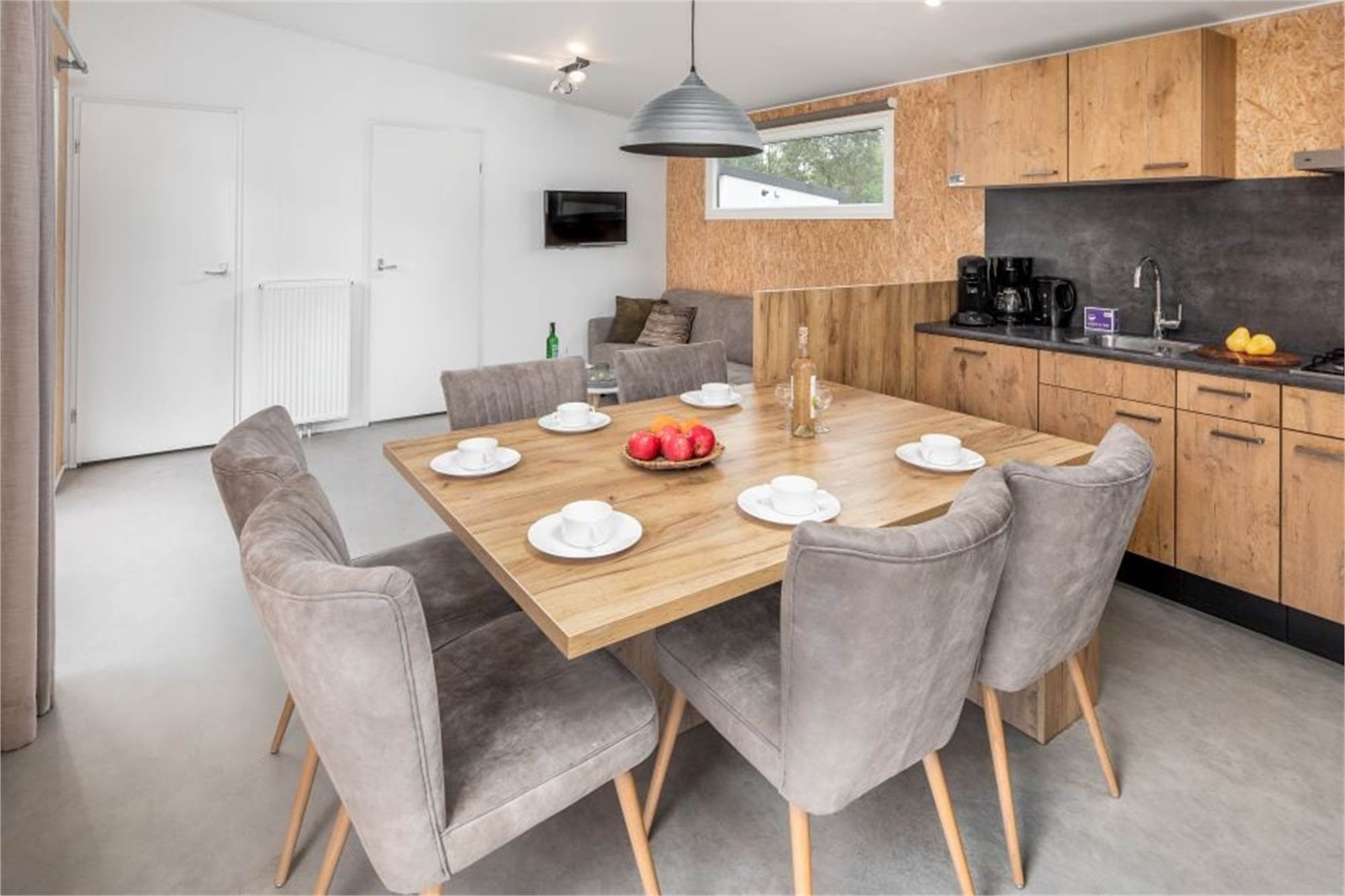 Dit vrijstaande chalet is geschikt voor 6 personen. De woonkamer is voorzien van een aparte eethoek en in de keuken vind je onder andere een vaatwasser, combimagnetron en koffiepadapparaat. Daarnaast zijn er 3 slaapkamers, waarvan 2 met 2 eenpersoons boxspringbedden en 1 slaapkamer met stapelbed. Verder is er een badkamer met douche en er is een toilet. Ook is het chalet uitgerust met een gemeubileerd terras en kun je gratis gebruikmaken van wifi.