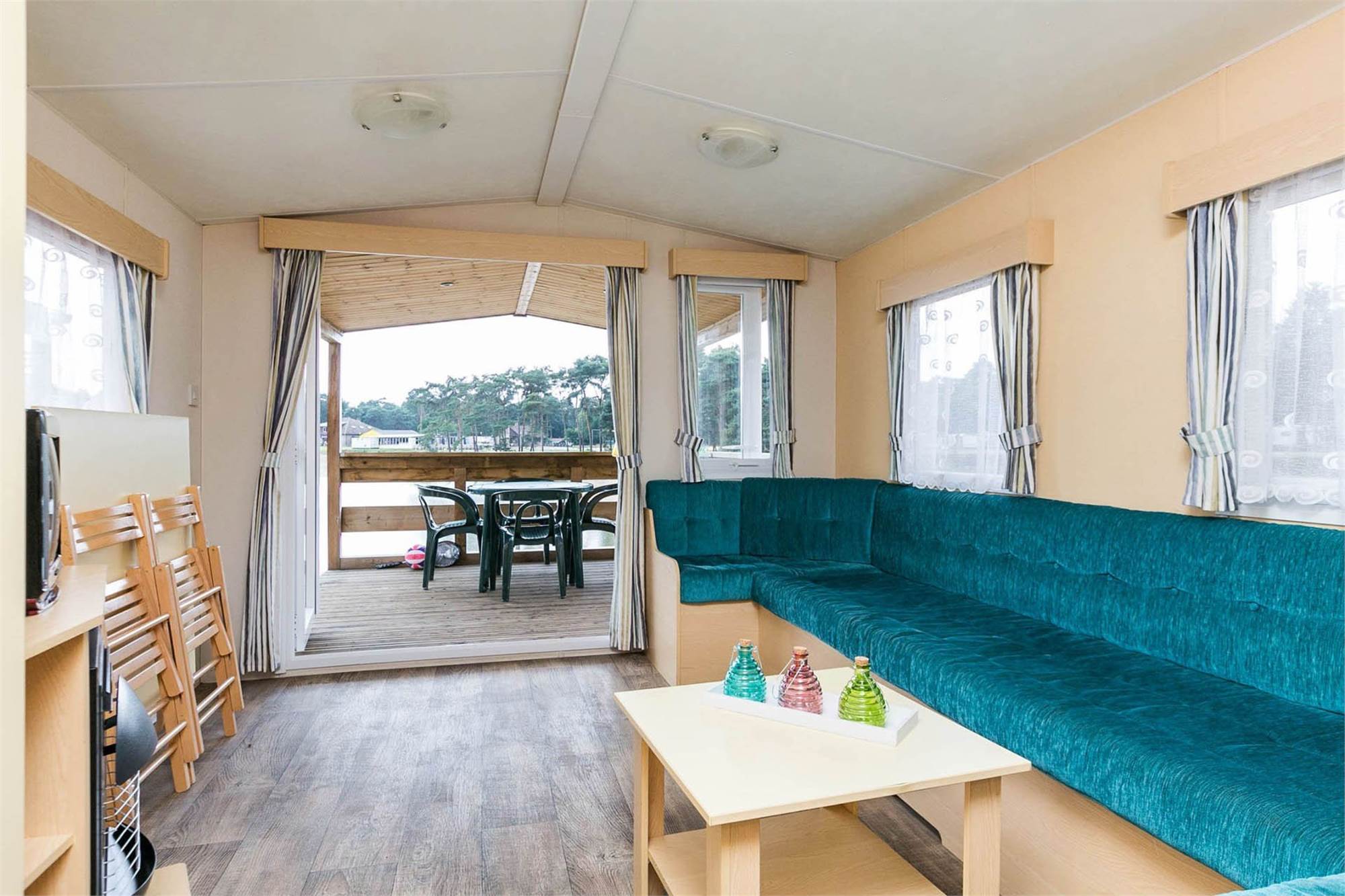 Een mobilehome is ideaal om in te verblijven wanneer je wat meer luxe wilt hebben tijdens je vakantie. Het heerlijke vakantiegevoel waarbij je niets hoeft op te zetten of mee moet sjouwen. Je mobilehome is altijd voorzien van een gemeubileerde zithoek met TV en kachel, keuken met koelkast, magnetron, koffiezetapparaat, 4 pits kooktoestel en keukeninventaris, badkamer met toilet, wastafel en douche en een complete tuinset inclusief ‘Oostappen Groep’ parasol.