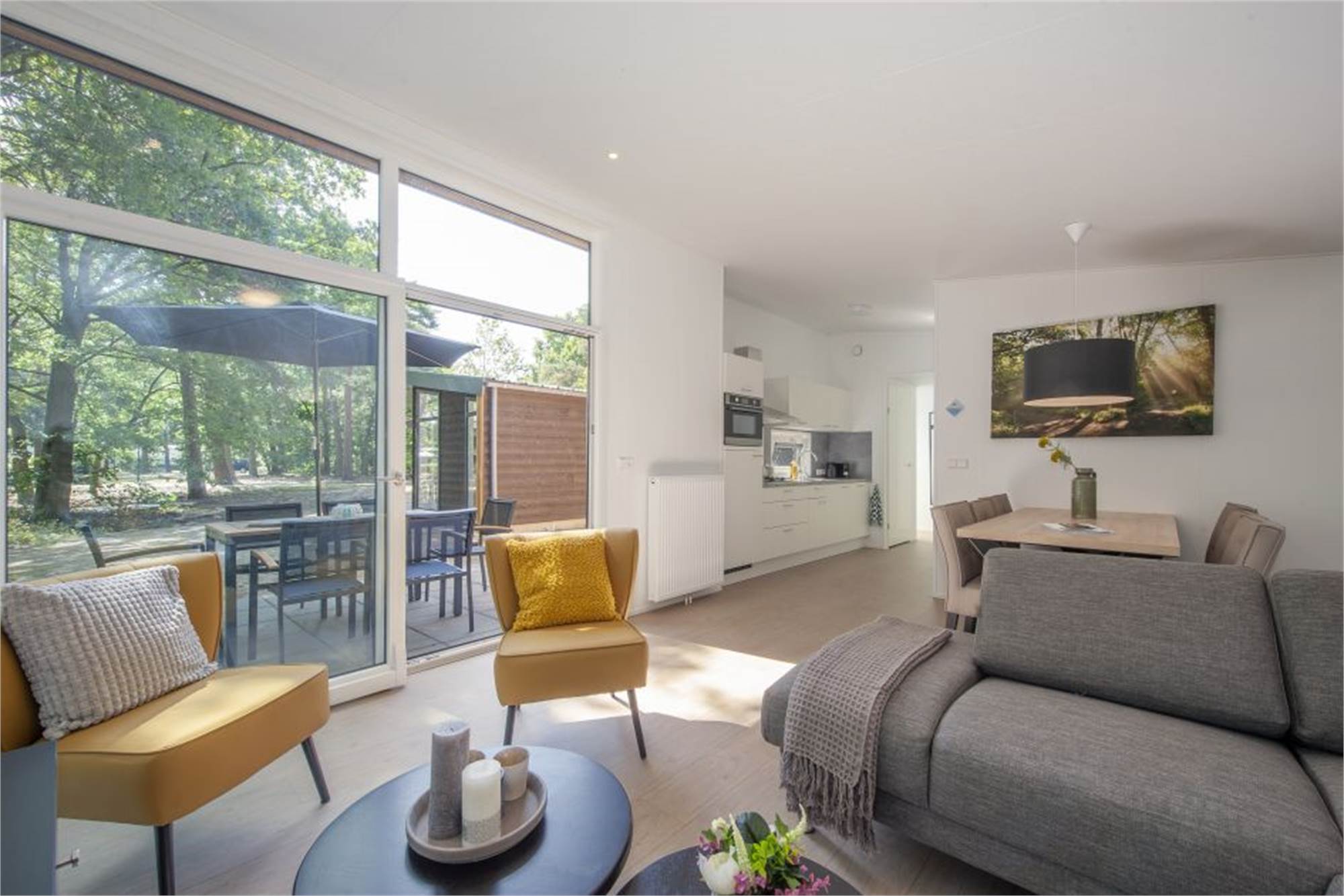 Dit type lodge is spiksplinternieuw! Bij een nieuwe lodge hoort natuurlijk een nieuwe tuin. De tuin is nog niet volledig begroeid. Toch lekker luieren in het gras of spelen tussen de bomen? Bij de zwemvijver is er volop plaats!