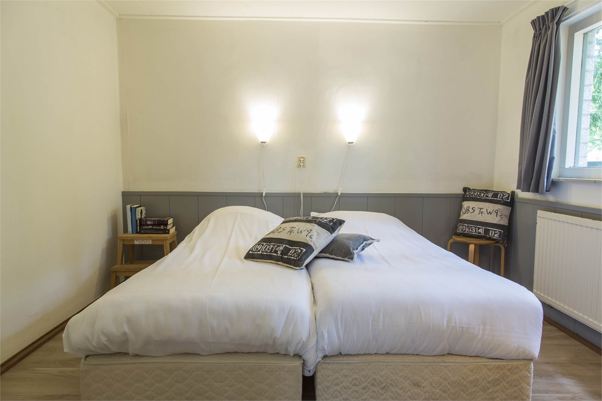 - Slaapkamer met twee 1-persoons boxspring bedden