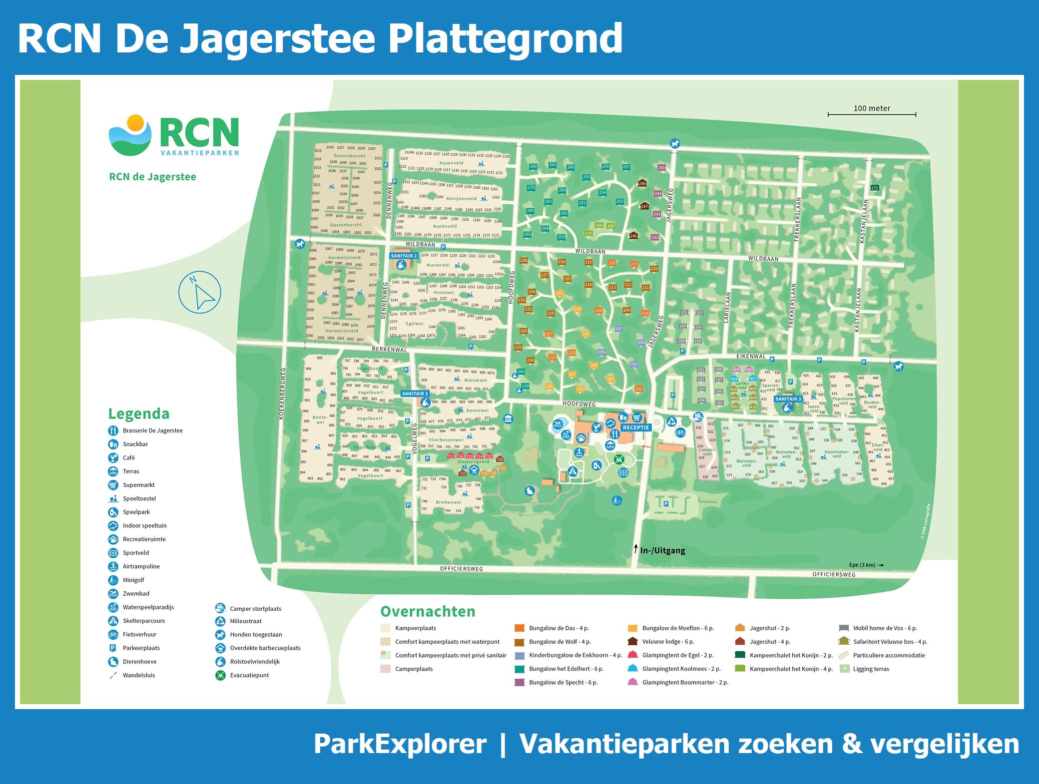 Actuele en overzichtelijke park plattegrond van RCN De Jagerstee met alle huisjes en faciliteiten, ook te downloaden als PDF.