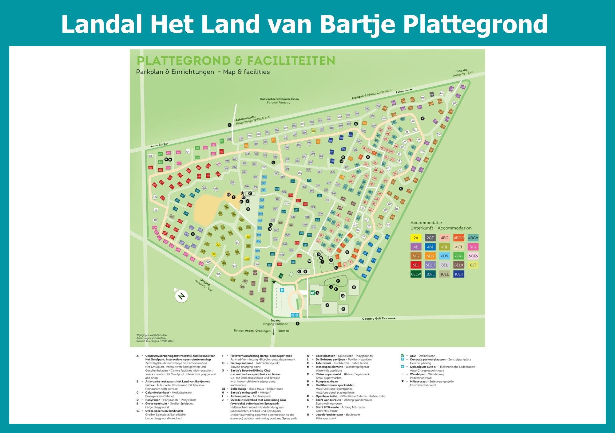 Actuele en overzichtelijke park plattegrond van Landal Het Land van Bartje met alle huisjes en faciliteiten, ook te downloaden als PDF.