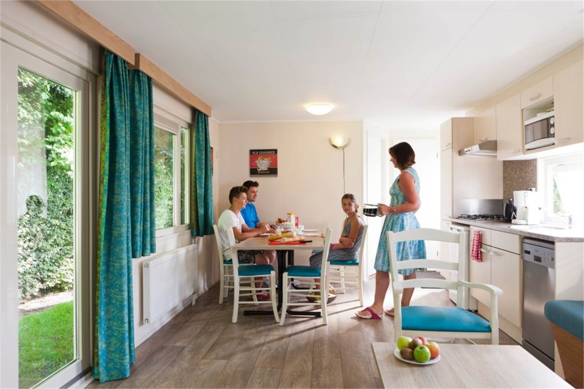 Dit vrijstaande, gelijkvloerse en kindvriendelijke chalet is geschikt voor 5 personen en 1 baby. De woning heeft een fris ingerichte woonkamer met een gezellige zithoek en een tv. De open keuken is uitgerust met onder andere een vaatwasser, een magnetron en een filterkoffiezetapparaat. Verder heeft het chalet 3 slaapkamers, waarvan 1 met stapelbed, 1 met 2 eenpersoonsbedden en 1 met een eenpersoonsbed en kinderbed. Ook is er een badkamer met douche en toilet. Buiten vind je een tuin met gemeubileerd terras. Tot slot is de woning kindvriendelijk ingericht met een campingbed, kinderstoel, een fornuisbeschermer, afgeschermde wandcontactdozen en een tuinomheining.