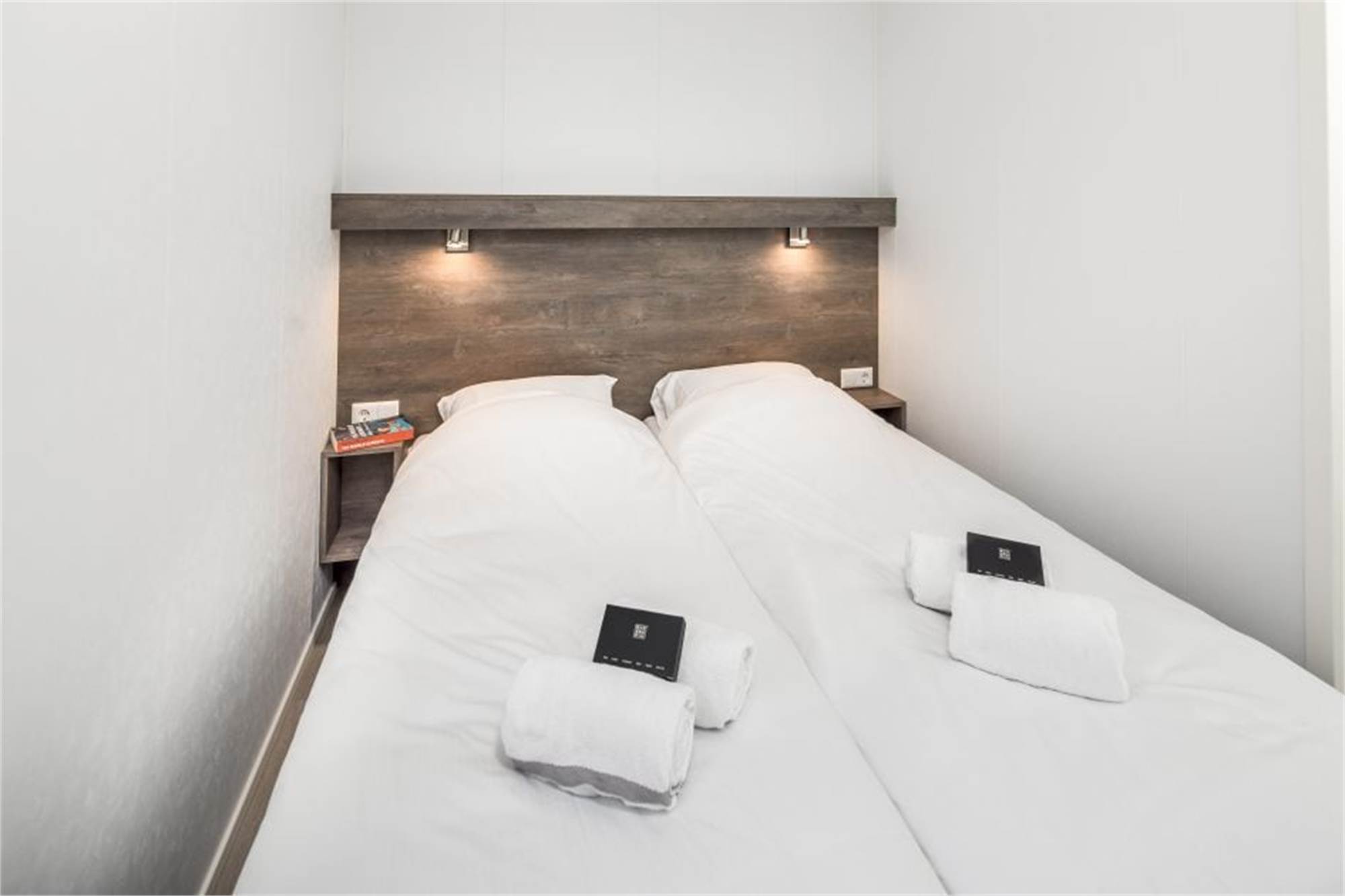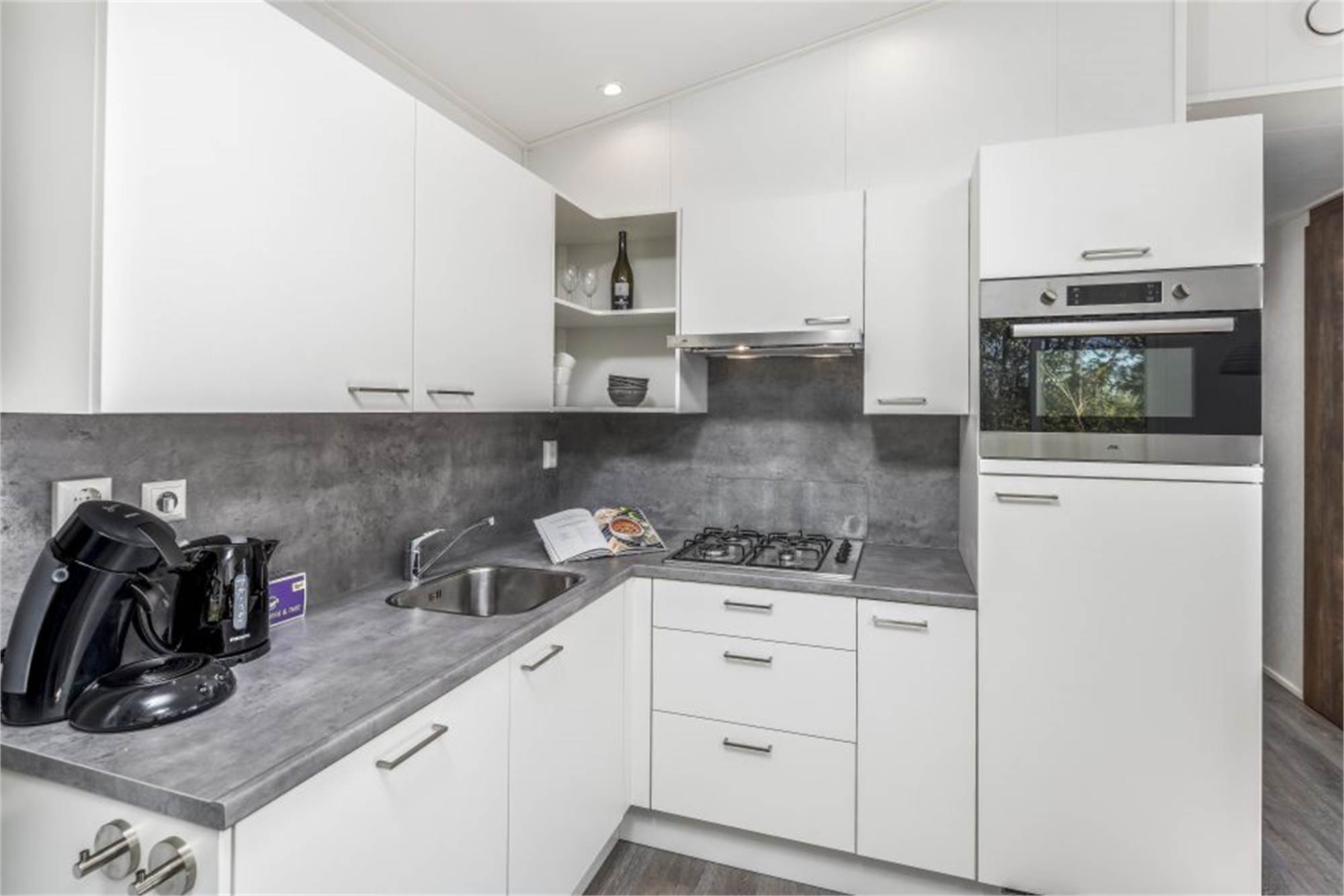 Vrijstaande, gelijkvloerse lodge voor 4 volwassene en 2 kinderen. De woonkamer is sfeervol ingericht met een modern interieur en televisie met digitale TV. De keuken heeft een vaatwasser, magnetron, koelkast met intern vriesvak en koffiepadapparaat. Daarnaast beschikt de lodge over drie slaapkamers waarvan 1 slaapkamer met stapelbed en een badkamer met douche(cabine) en toilet. Ook is de lodge uitgerust met een tuin met meubilair en kun je gratis gebruikmaken van wifi. Indien je een kinderbedje meeneemt, houd er dan rekening mee dat er in de slaapkamer geen ruimte voor is. Je kunt het kinderbedje in de woonkamer plaatsen.
