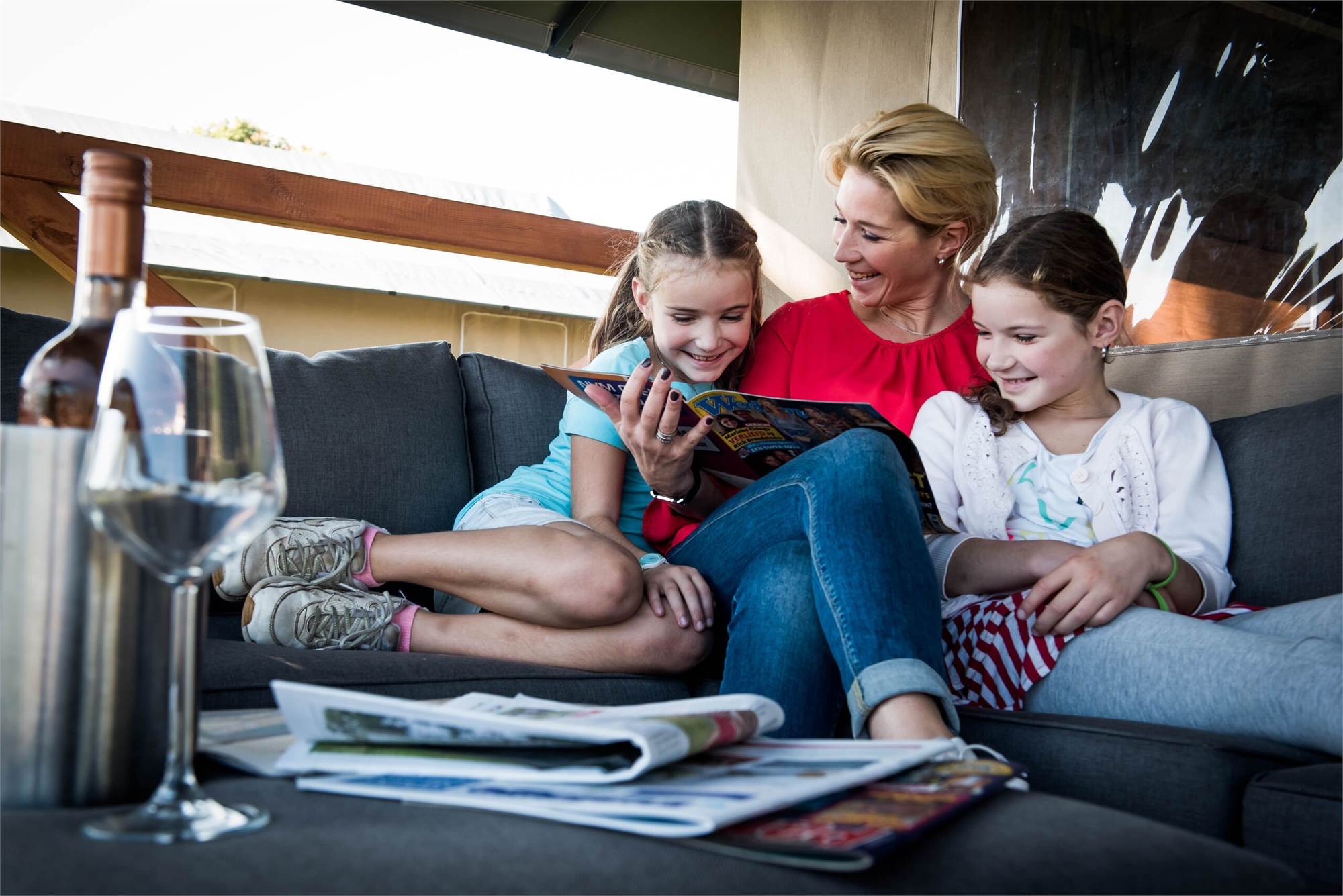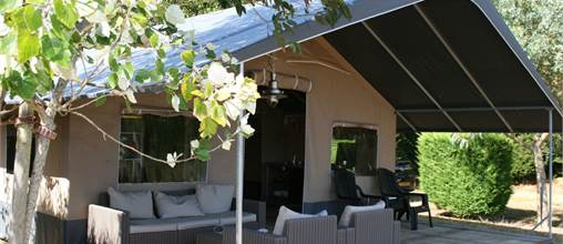 De Safaritent is een zeer robuuste tent van 8,4 x 6 meter. Totaal ruim 50m². De hoogte van de tent is 3,5 meter! Zodra je binnenstapt in de Safaritent komt er een gevoel van rust en ruimte over je heen... Het is heerlijk zitten onder de enorme luifel van maar liefst 2,80 m lang! De tent is ruim en voorzien van een degelijke vlonder en voorzien van heerlijke bedden met dekbedden en hoofdkussens.