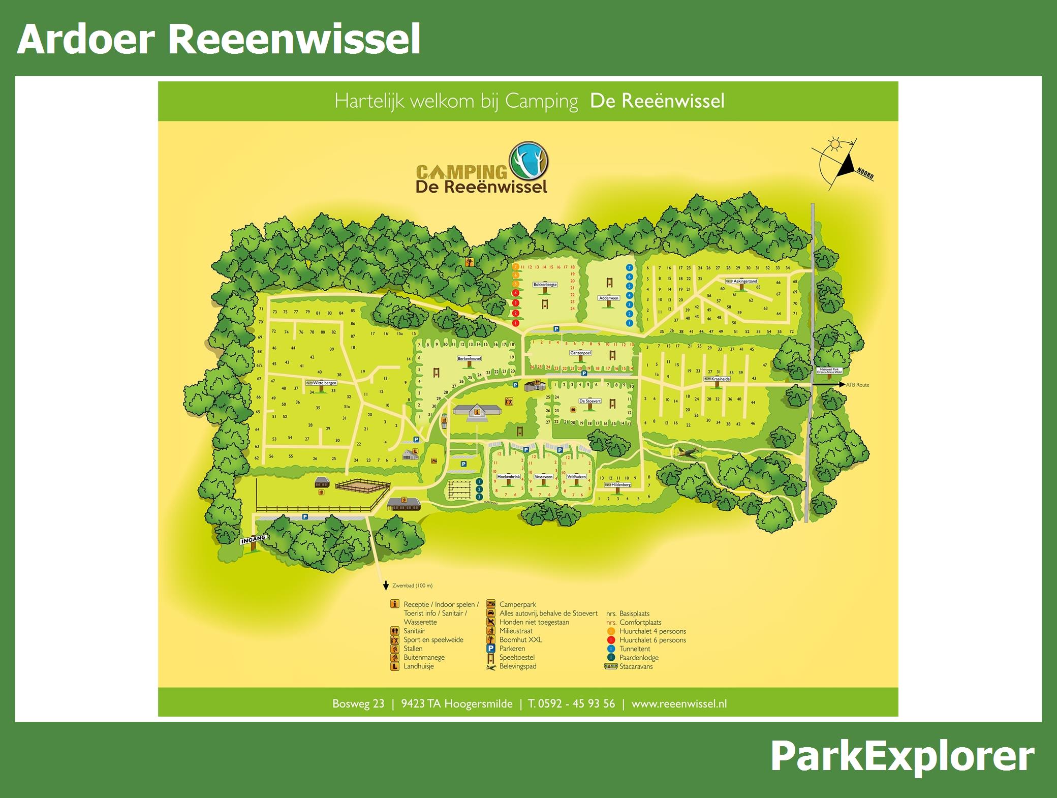 De park plattegrond van Ardoer Reeenwissel is niet alleen zeer handig tijdens het verblijf, maar vooral ook tijdens het boeken. De plattegrond geeft een goed beeld van de aanwezige faciliteiten en de ligging ervan op het park. TIP: Boek met voorkeursligging en kies een huisje in de buurt van de belangrijkste faciliteiten.