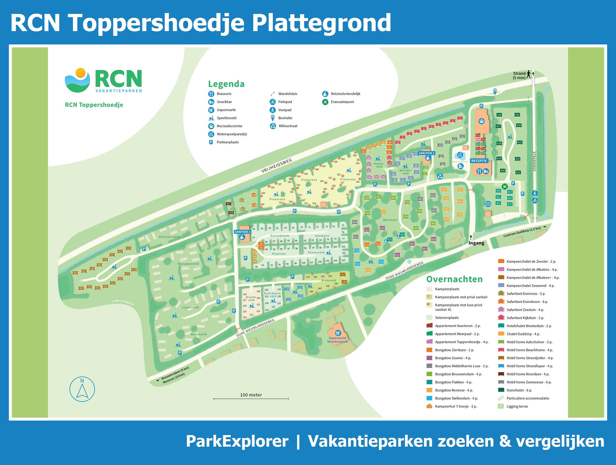 Actuele en overzichtelijke park plattegrond van RCN Toppershoedje met alle huisjes en faciliteiten, ook te downloaden als PDF.