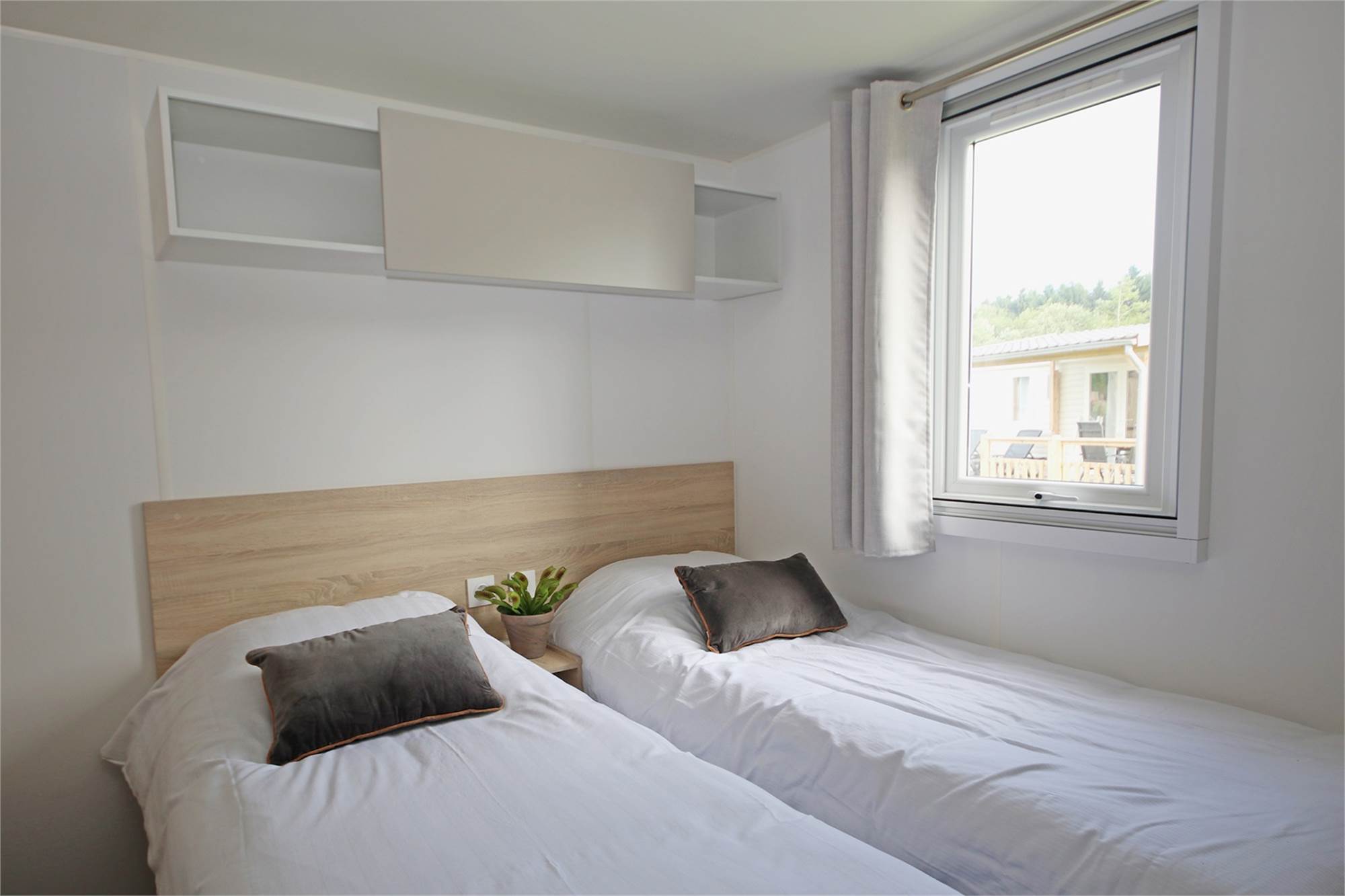 - Slaapkamer met twee 1-persoons boxspring bedden